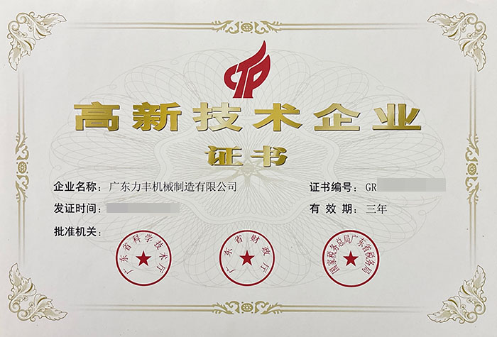 雷速机械制造有限公司于2016年成为国家高新技术企业